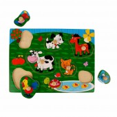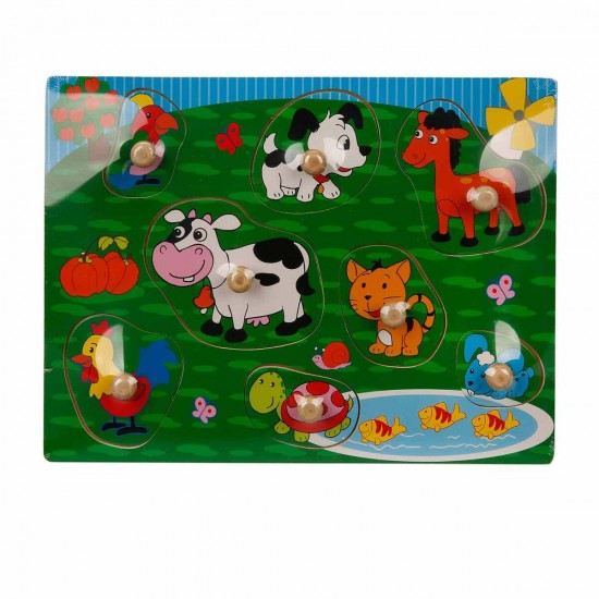 Puzzle-sorter din lemn cu buton Animale, 8 el. Woody