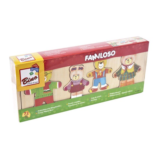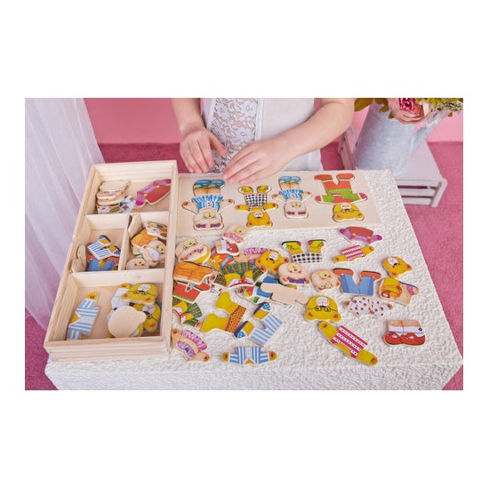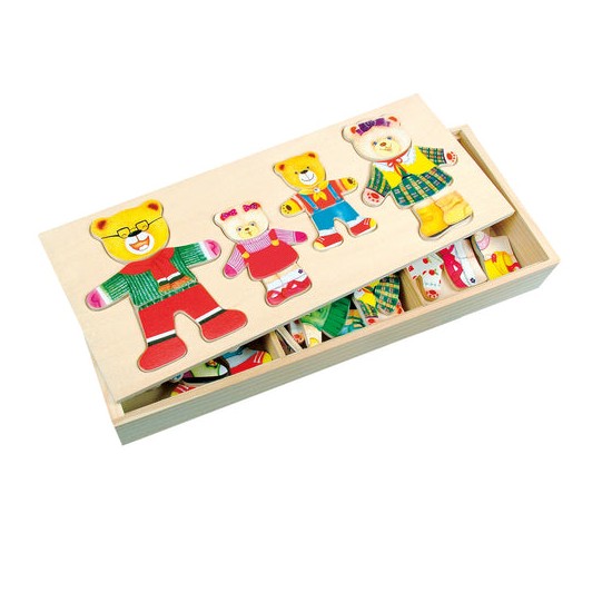 Puzzle din lemn in cutie, Imbraca Familia Ursilor, 72 piese
