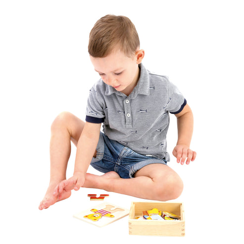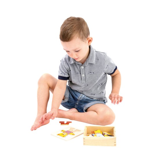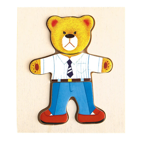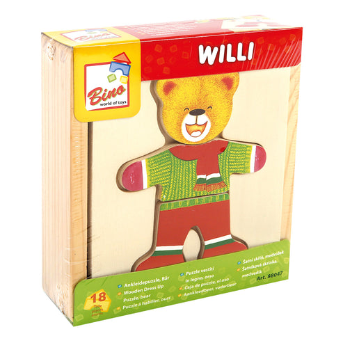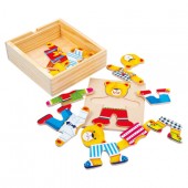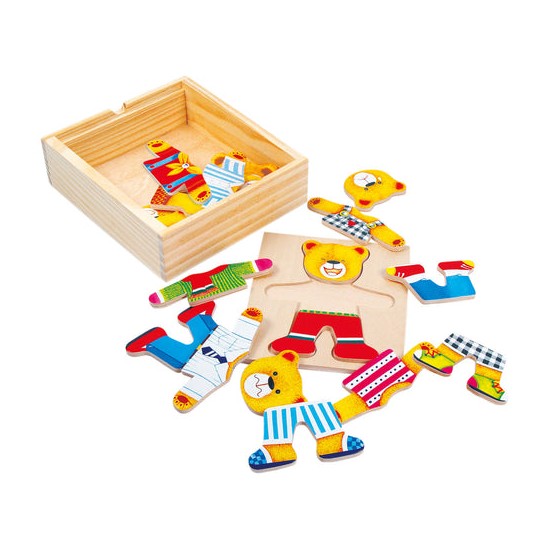 Puzzle din lemn in cutie, Imbraca Ursul Willi, 18 piese