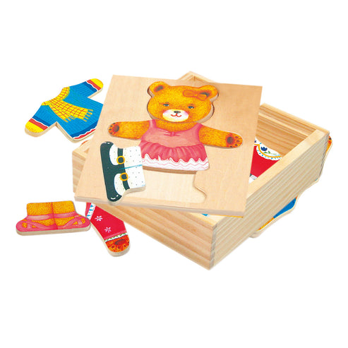 Puzzle din lemn in cutie, Imbraca Ursoaica Berta, 18 piese