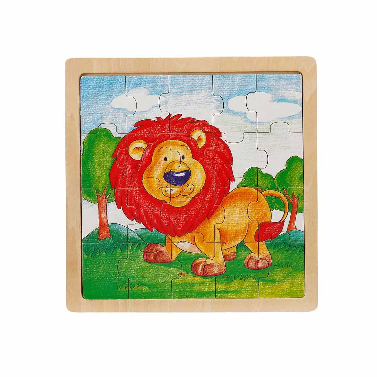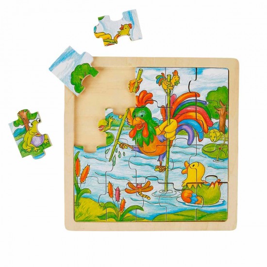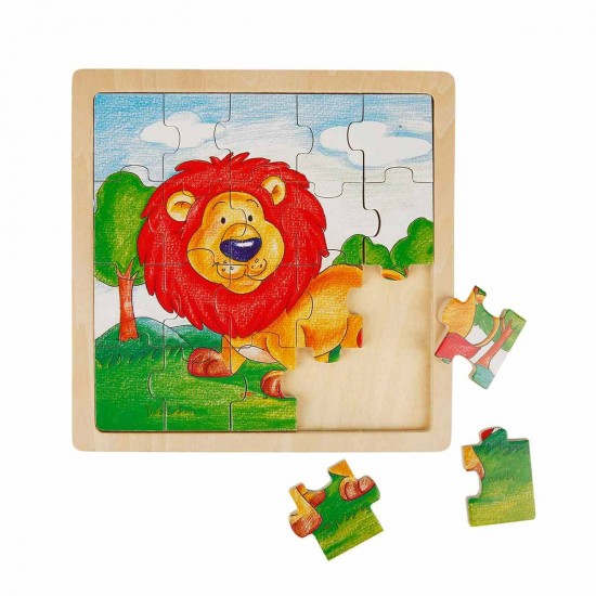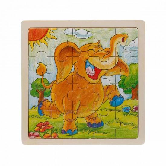 Puzzle din lemn Animale 20 el. 19,5 x 1 x 19,5 cm diverse tipuri Woody