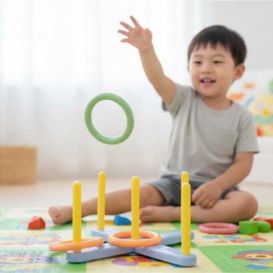 Jocul SERSO este un joc clasic de indemanare, cunoscut si sub denumirea de "jocul de aruncat inele". Jucatorii trebuie sa arunce inele colorate pentru a le prinde pe pilonii verticali ai suportului in forma de cruce. Este potrivit atat pentru interior, cat si pentru exterior, oferind distractie si dezvoltare pentru copii.