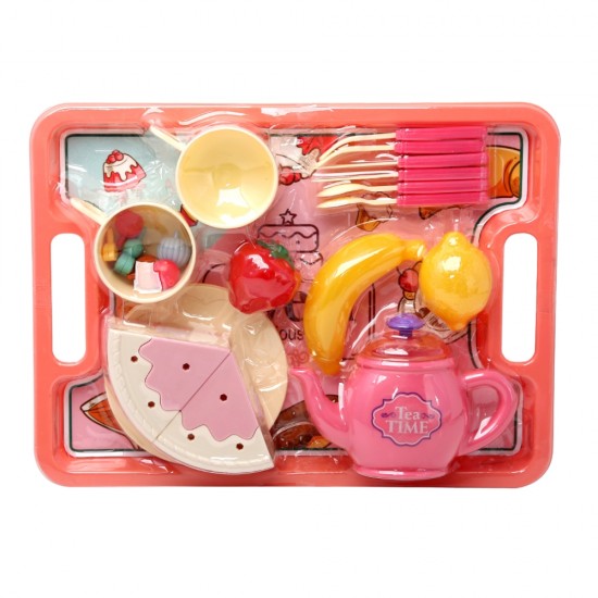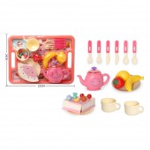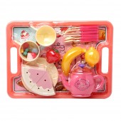 Platou cu set de ceai pentru copii cu torta si fructe de jucarie 25 el., ZJA323773