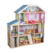 O casuta pentru papusi eleganta si detaliata, ce ofera un spatiu generos, completat cu mobilier si design atractiv, oferind ore intregi de joaca creativa. Cele 3 etaje ale casutei ofera spatiu suficient pentru a crea diferite zone de activitate, inclusiv un living, o bucatarie si un dormitor. Setul include o gama de 28 de accesorii de mobilier din lemn, cum ar fi paturi, mese, scaune si alte piese esentiale.