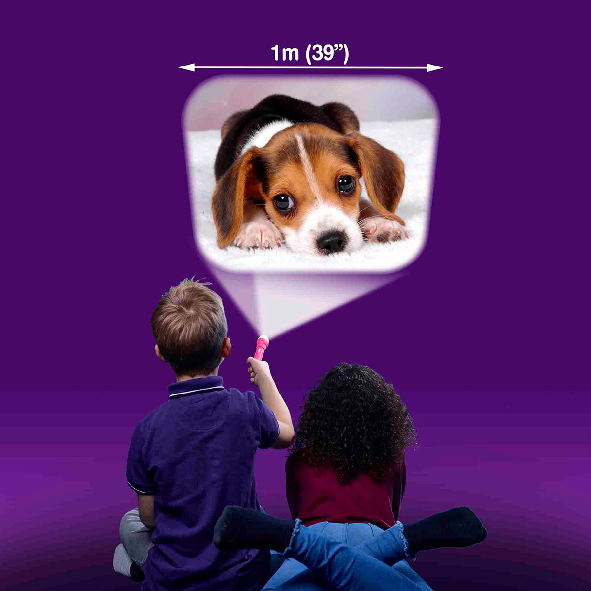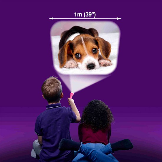 Folosind o lanterna, o imagine de pana la 1 m latime va fi proiectata pe perete. Pentru a face imaginea mai clara, poti roti lentila lanternei si regla focalizarea.