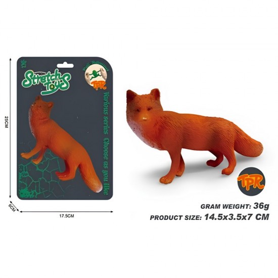 Descopera farmecul padurii cu figurina elastica Vulpe! Aceasta jucarie interactiva este fabricata dintr-un material special, extrem de maleabil (TPR), care permite copiilor sa o intinda si sa o stranga in mod repetat, revenind intotdeauna la forma sa originala. Designul realist, cu textura ce imita blana si o culoare portocalie vibranta, face ca aceasta vulpe sa fie o piesa adorabila in orice colectie de animale salbatice.