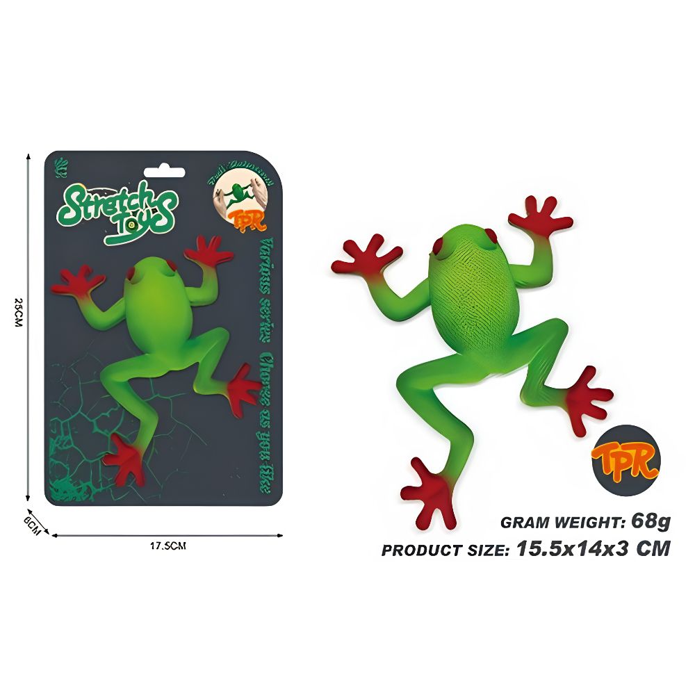 Este o jucarie senzoriala excelenta pentru copii si adulti deopotriva, fiind ideala pentru eliminarea stresului si imbunatatirea concentrarii prin manipulare tactila. Datorita proprietatilor sale elastice, broasca poate fi intinsa pana la dimensiuni impresionante, revenind mereu la forma sa originala.