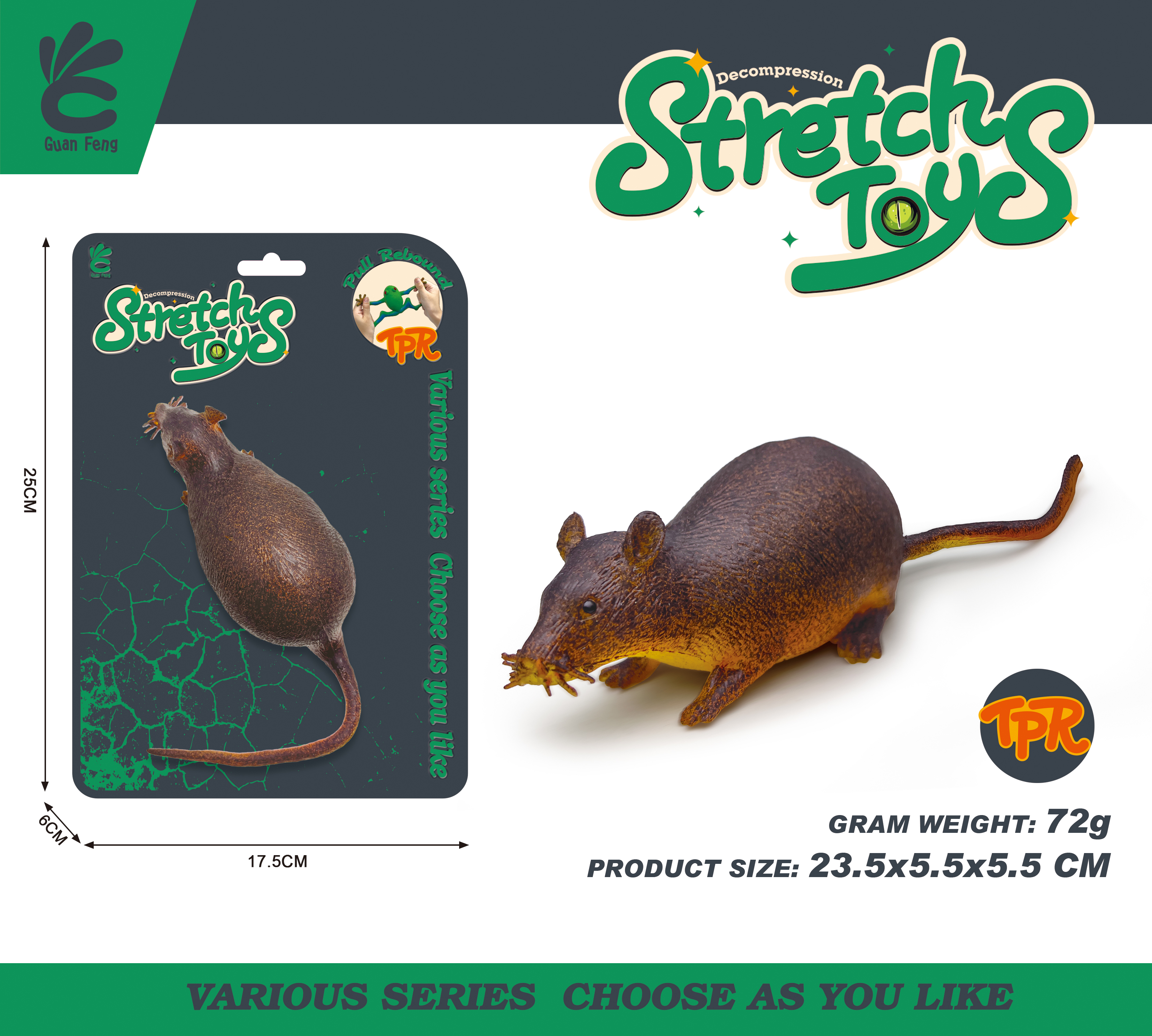 Distreaza-te cu figurina elastica Soarece, o jucarie amuzanta si captivanta pentru cei mici! Realizata dintr-un material inovator (TPR), aceasta figurina este extrem de flexibila, permitand copiilor sa o intinda si sa o modeleze dupa bunul plac. Datorita texturii sale moi si rezistente, soarecele revine intotdeauna la forma initiala, oferind o experienta tactila satisfacatoare.