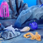 Jucariile-animale sunt confectionate din material elastic si se intind perfect! Unele jucarii isi pot schimba culoarea in apa, iar altele stralucesc in intuneric! Colecteaza-le pe toate pentru a descoperi cine ce poate face! Pentru schimbarea culorii, scufunda jucaria in apa cu temperatura de peste 30-32°C. Pentru a straluci in intuneric, jucariile trebuie tinute cateva minute la soare sau sub o lampa.