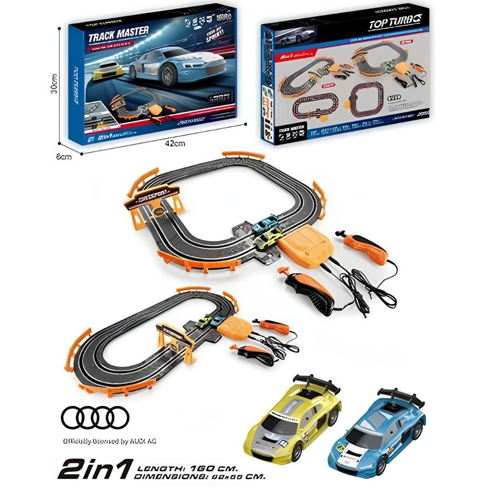 Incepe-ti cariera de pilot cu setul de joaca Track Master 2-in-1! Acest circuit electric, cu o lungime totala de 160 cm, este poarta de intrare perfecta in lumea curselor auto. Setul include doua masini Audi detaliate la scara 1:64, oferind o experienta de joc autentica si dinamica. Designul inteligent 2-in-1 permite reconfigurarea traseului, astfel incat fiecare cursa sa fie o noua provocare.