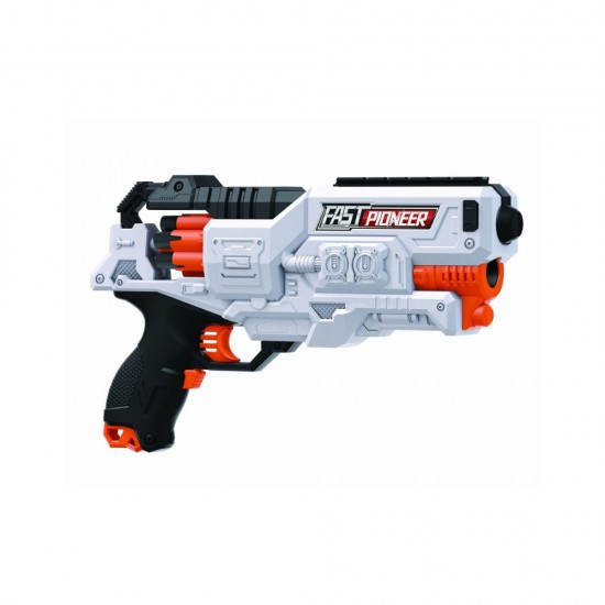 Pistol de jucarie electric cu gloante din spuma, 24 proiectile, cilindru rotativ, Fast Pioneer
