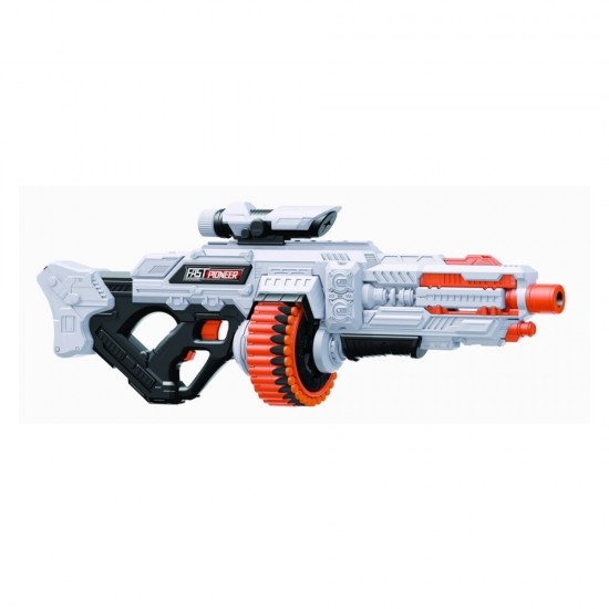 Arma de jucarie electrica cu gloante din spuma, 48 proiectile, cilindru rotativ, Fast Pioneer