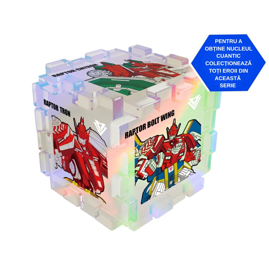 Setul include si un element special din Nucleul Cuantic cu imaginea eroului principal. Colecteaza toti eroii din serie ca sa completezi Nucleul Cuantic! Piesele au margini care se imbina intre ele, astfel incat poti crea un cub. Robotul se construieste din 43 piese, iar partile pot fi combinate cu alte personaje Dinoster pentru a crea un robot nou si original.