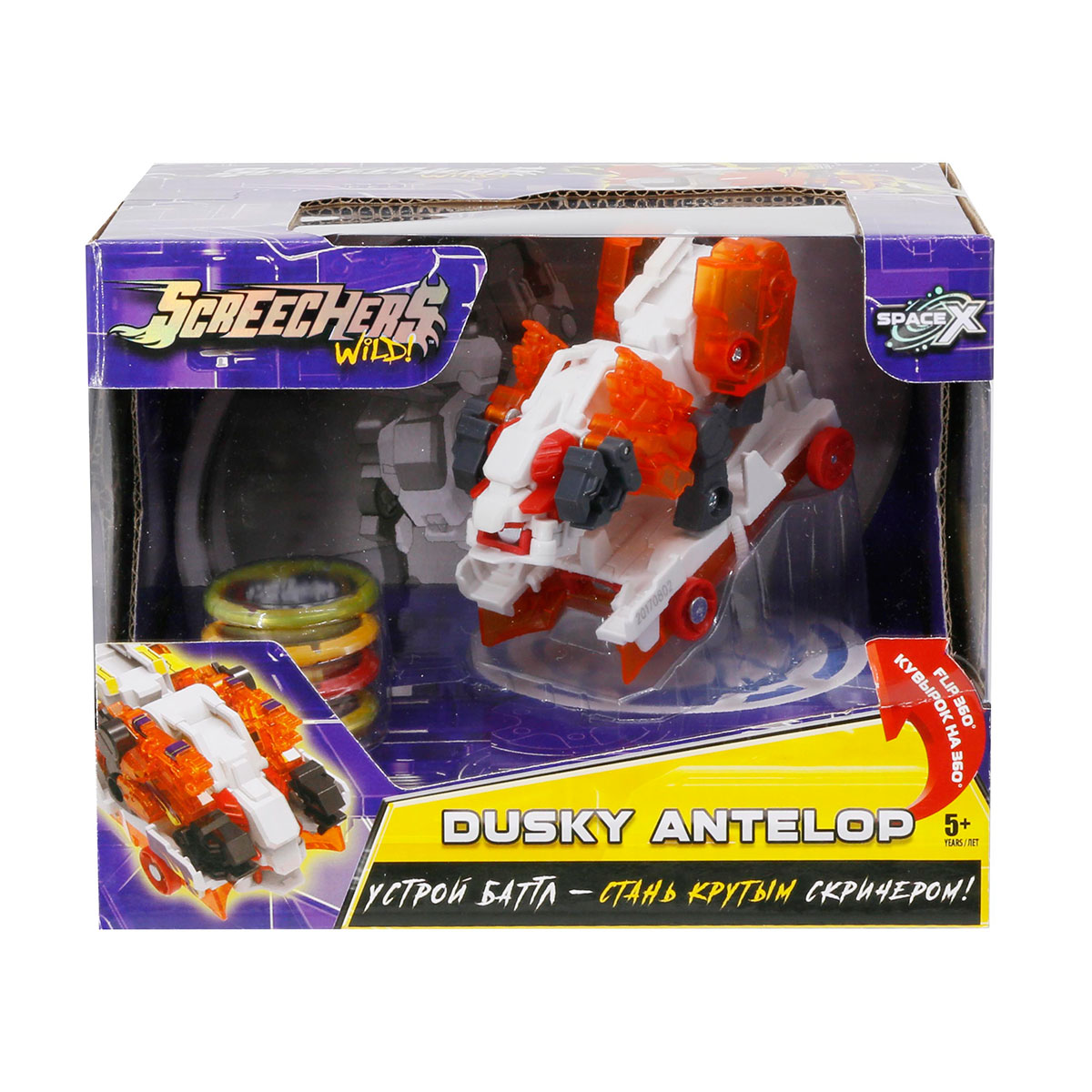 Micii iubitori de pelicule fantasy! La Toyland gasesti masina-transformer Screechers Wild S3 L2 Dusky Antelope. Aceasta capteaza 2 discuri, face o rasturnare la 360 °; si se transforma intr-o antilopa de lupta. Cand atinge discul, aparatul va face o saritura in aer si se va transforma intr-o fiara. Discul are o suprafata neteda pentru o alunecare perfecta si o suprafata de cauciuc pentru a-l mentine pe loc. Masina de transformer are o constructie solida cu elemente de fixare fiabile si este realizata din materiale de inalta calitate.