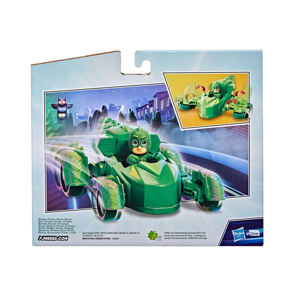 Masina are caracteristici mecanice, este compatibila cu toate figurinele PJ Masks de la Hasbro si nu necesita baterii sau alte surse de alimentare. Dispune de functii complet mecanice ceea ce o face de doua ori mai interesanta!