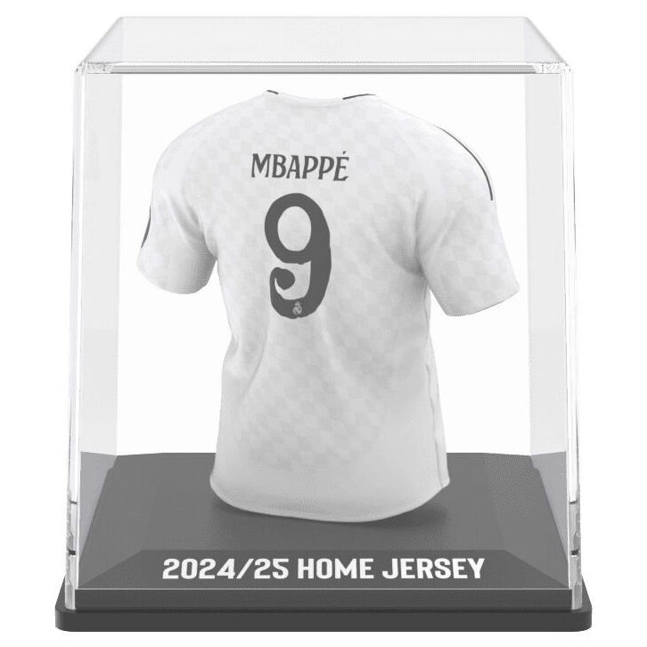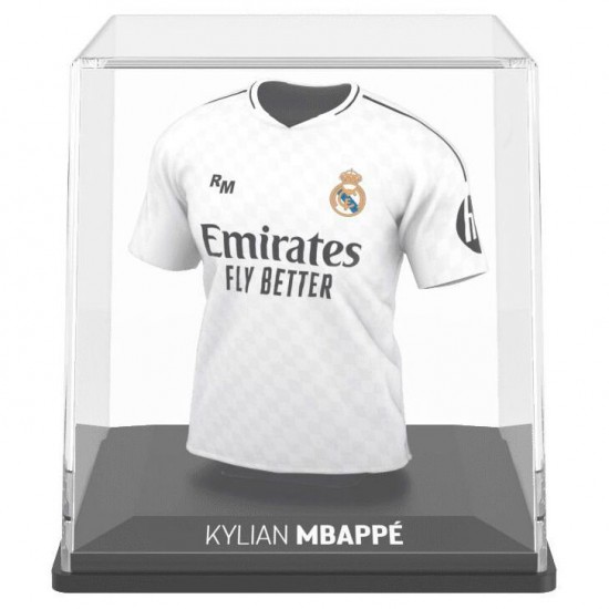 Figurina Football replica mini tricou – Real Madrid: Kylian Mbappe nr. 9, cu vitrina acrilica