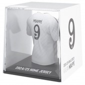 Mini tricoul este realizat din vinil, acril si plastic biodegradabil, materiale rezistente care ofera un aspect detaliat si durabilitate in timp. Figurina este prezentata intr-o vitrina din acril transparent, ideala pentru protejarea si expunerea produsului pe raft, birou sau in vitrina unei colectii sportive. Dimensiunea produsului cu tot cu vitrina este de aproximativ 9,5 cm inaltime si 9,1 cm latime, fiind compact si usor de expus in orice spatiu.