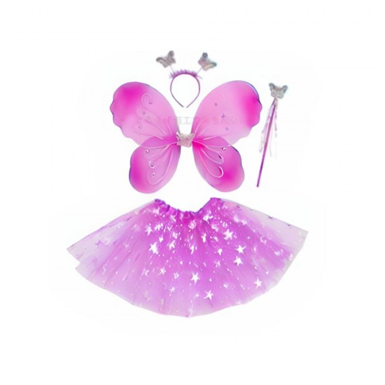 Set Aripi de Fluture violet/roz/albastru cu fustita, cerc si bagheta, ZJA359655
