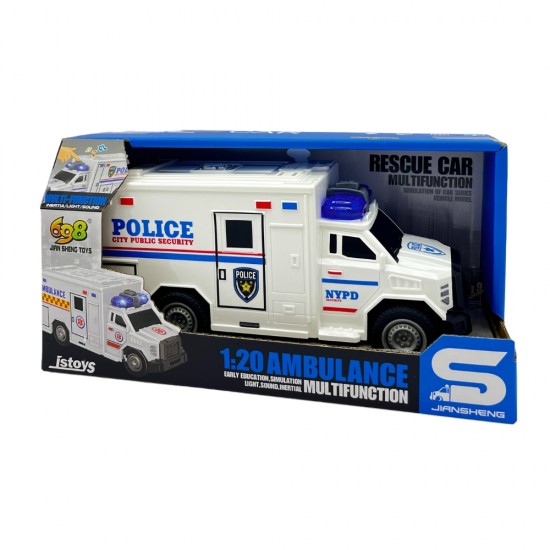 Camion Ambulanta-Politie cu frictiune, sunete si lumini, 1:20, jstoys, ZJA363887