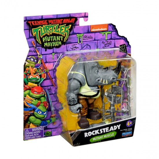 Ai grija sa nu spui nimic care l-ar putea enerva pe tipul asta! Figurina cu articulatii Rocksteady din filmul Testoasele Ninja ii place sa lupte cu toate armele pe care le detine. Figurina de ticalos cu 13 puncte de articulare va diversifica jocul si colectia.