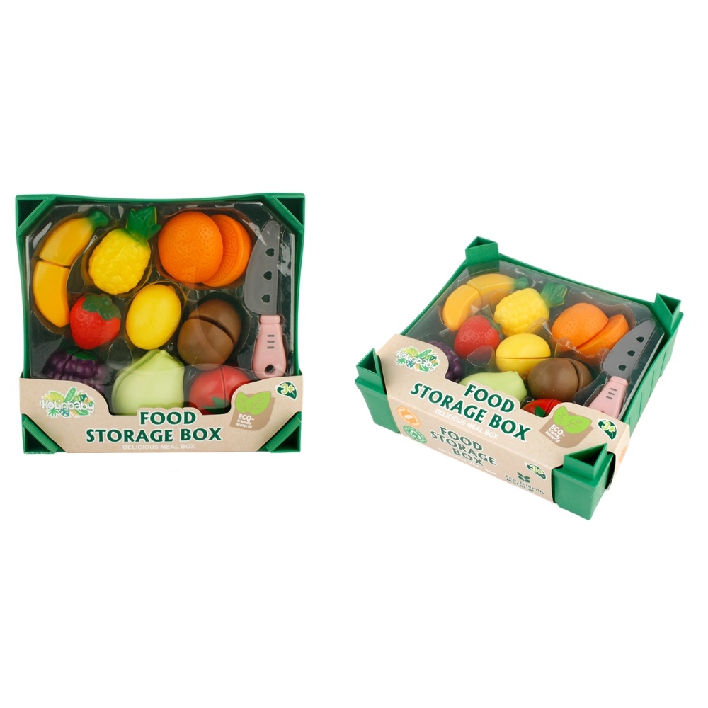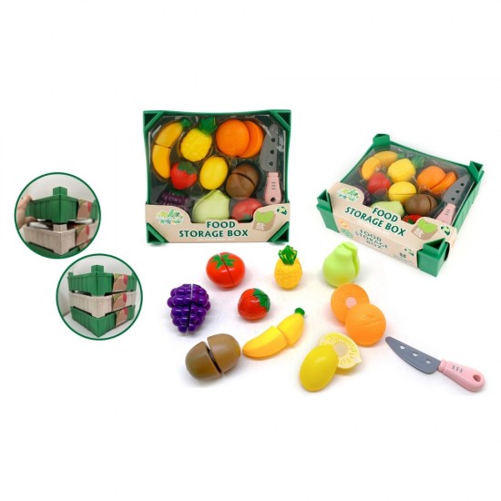Un set adorabil si interactiv ce include o varietate de fructe de jucarie, precum mere, banane, portocale si altele, care pot fi "taiate" cu ajutorul unui cutit de jucarie. Fiecare fruct este impartit in doua parti, care se pot conecta printr-un "arici" (tip velcro), pentru a imita taierea reala.