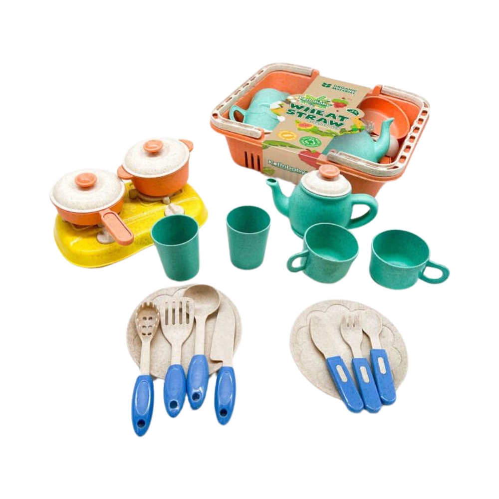 Un set adorabil si interactiv ce include 21 de piese, printre care un cos frumos decorat, vesela colorata si un set complet de ceai, cu cesti, farfurii, ceainic si lingurite.