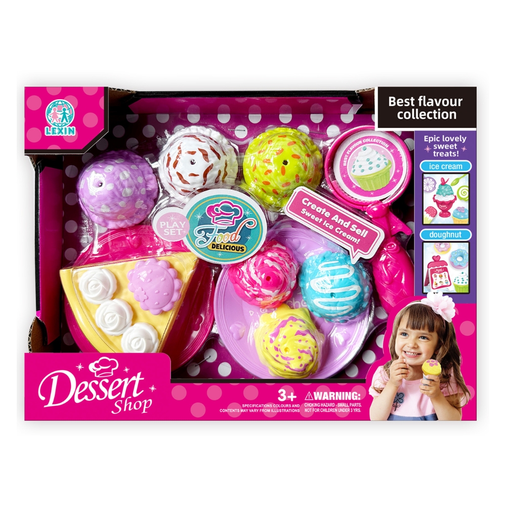 Un set adorabil si interactiv, cu o varietate de inghetate si deserturi de jucarie, impreuna cu ustensile specifice pentru a le ,,pregati" si "servi". Fiecare detaliu este atent realizat pentru a adauga realism jocului si pentru a incuraja copiii sa invete despre alimentatie, interactiuni sociale si sa simuleze experiente cotidiene. Este un cadou ideal pentru orice copil care adora sa se joace de-a patiseria sau sa organizeze petreceri de bucate delicioase!