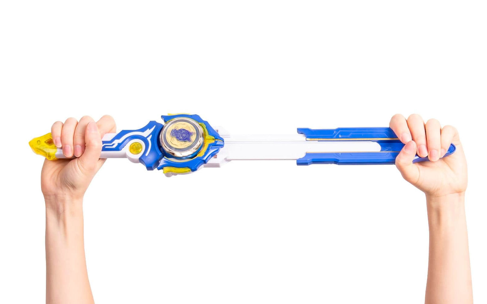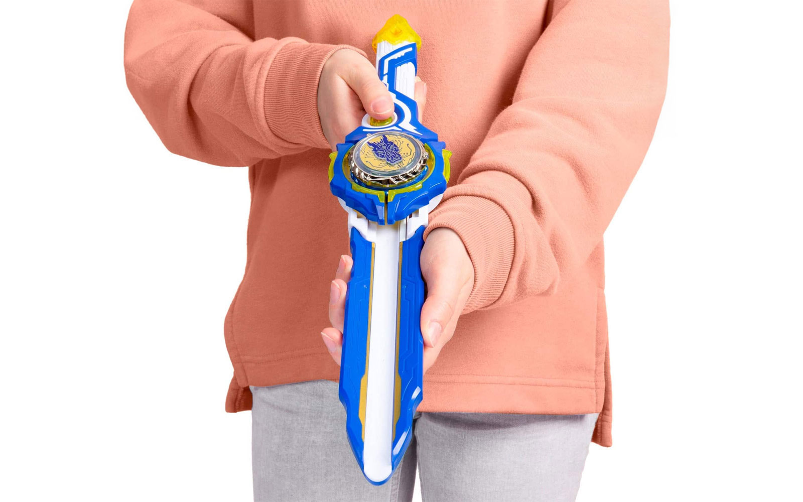 Introdu partea superioara a dispozitivului Nado in rampa de lansare a sabiei - trage inainte si inapoi pentru a accelera. Nado se va aprinde automat pe masura ce invartesti, apoi apasa pe tragaciul de pe maner, tinteste si trage pentru a incepe confruntarea epica cu prietenii tai.