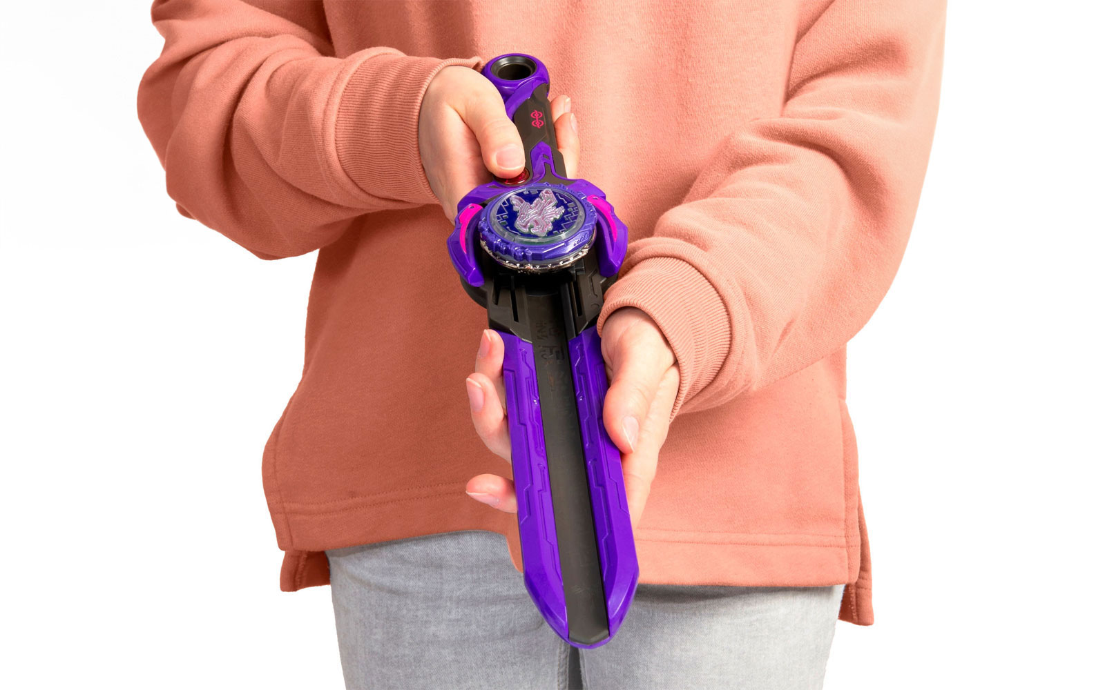 Introdu partea superioara a dispozitivului Nado in rampa de lansare a sabiei - trage inainte si inapoi pentru a accelera. Nado se va aprinde automat pe masura ce invartesti, apoi apasa pe tragaciul de pe maner, tinteste si trage pentru a incepe confruntarea epica cu prietenii tai.