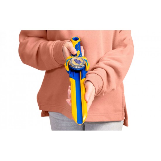 Introdu partea superioara a dispozitivului Nado in rampa de lansare a sabiei - trage inainte si inapoi pentru a accelera. Nado se va aprinde automat pe masura ce invartesti, apoi apasa pe tragaciul de pe maner, tinteste si trage pentru a incepe confruntarea epica cu prietenii tai.