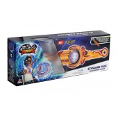 Introdu partea superioara a dispozitivului Nado in rampa de lansare a sabiei - trage inainte si inapoi pentru a accelera. Nado se va aprinde automat pe masura ce invartesti, apoi apasa pe tragaciul de pe maner, tinteste si trage pentru a incepe confruntarea epica cu prietenii tai.