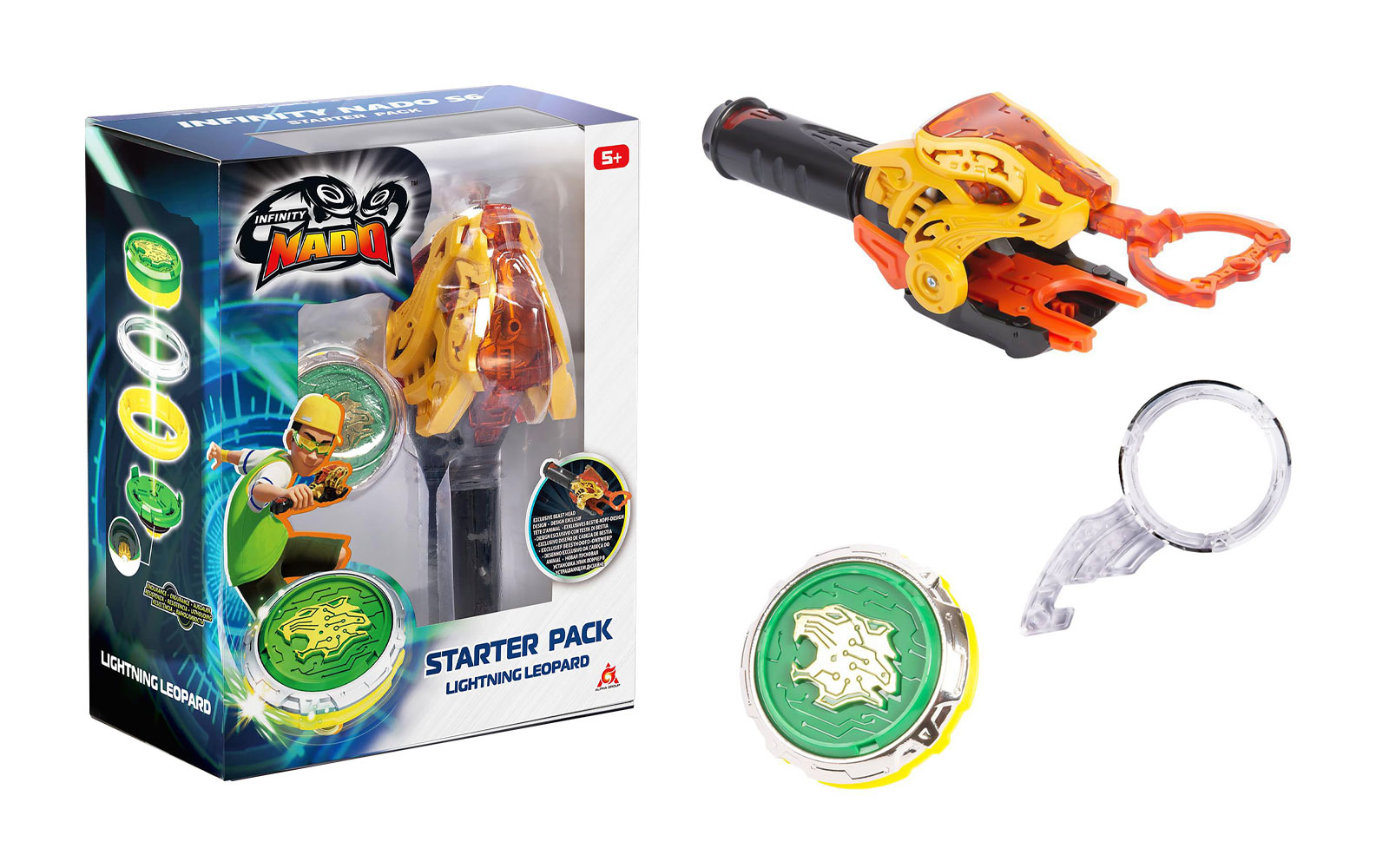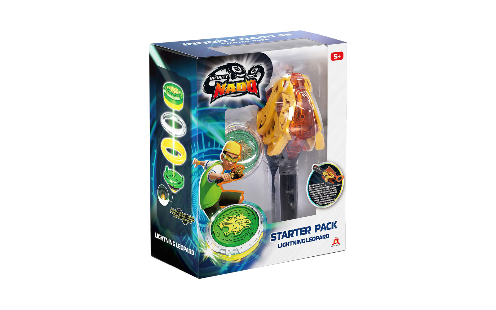 Lansatorul ofera putere si viteza de lupta pentru a castiga toate duelurile din Arena Nado. Tot ce trebuie sa faci este sa fixezi spinnerul in lansator si trage de sfoara pentru a accelera - Nado se va aprinde automat in timp ce se invarte. Pentru a-l lansa, trebuie doar sa apesi tragaciul de pe maner, tinteste apoi trage - confruntarea epica cu prietenii tai poate incepe!