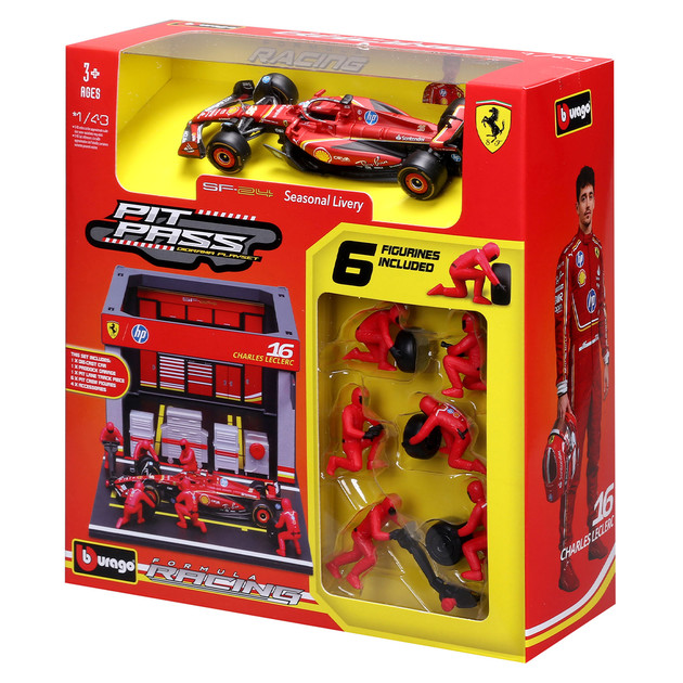 Setul de joaca Bburago Formula Pit Pass cu monopost Ferrari SF-24 este alegerea perfecta pentru micii fani Formula 1 si pentru colectionari. Copilul poate intra in atmosfera echipei Scuderia Ferrari si poate recrea momente spectaculoase de cursa si pit-stop. Modelul SF-24 este inspirat de masina reala cu care Charles Leclerc a obtinut victoria de acasa la Grand Prix Monaco 2024, un moment istoric pentru Ferrari.