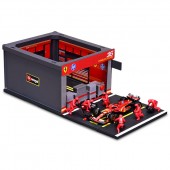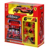 Setul include un garaj tip pit-lane si 6 figurine mecanici Ferrari cu unelte, astfel incat copilul poate simula schimbul rapid de roti si alte operatiuni din pit-stop.