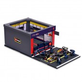 Setul contine un garaj tip pit-lane si 6 figurine mecanici Red Bull Racing cu unelte, permitand copilului sa recreeze schimburile rapide de roti si scenele clasice din pit-stop.