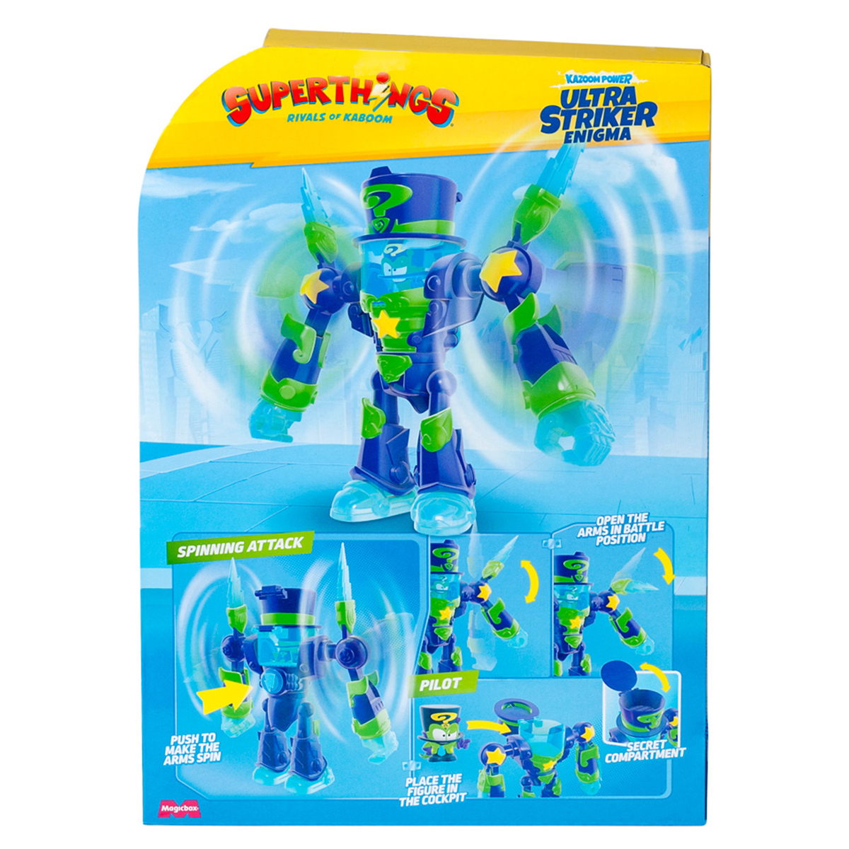 Ultrastriker Enigma a sosit! O masina de lupta puternica, incarcata cu energie Kazoom, este gata sa intre in lupta si sa protejeze orasul de noile amenintari. Datorita elementelor mobile si transformarilor, fiecare joc devine si mai dinamic si captivant.