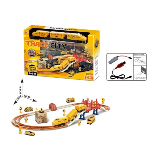 Set de joaca Cale ferata galbena cu tren electric, elemente fosforescente, accesorii si acumulator, ZJA361472