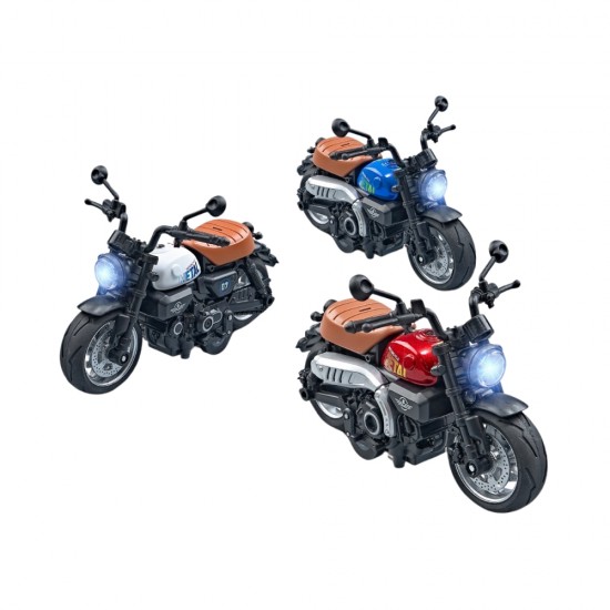 Motocicleta interactiva si inovatoare perfecta pentru pasionatii de vehicule. Aceasta motocicleta este echipata cu efecte sonore si lumini, adaugand un plus de realism si distractie in timpul jocului. Mecanismul pull-back permite motocicletei sa se deplaseze singura atunci cand este trasa inapoi, oferind o experienta dinamica si interactiva.