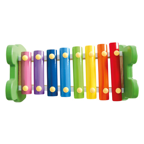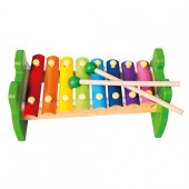 Xilofon Broasca pentru copii, din lemn si metal, frumos colorat si prevazut cu 8 note muzicale.