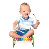 Xilofonul este imprimat cu elemente grafice atragatoare si vine frumos prezentat intr-o cutie de lemn, alaturi de cele 2 bete pentru percutie, pentru a fi mereu la indemana micilor muzicanti.