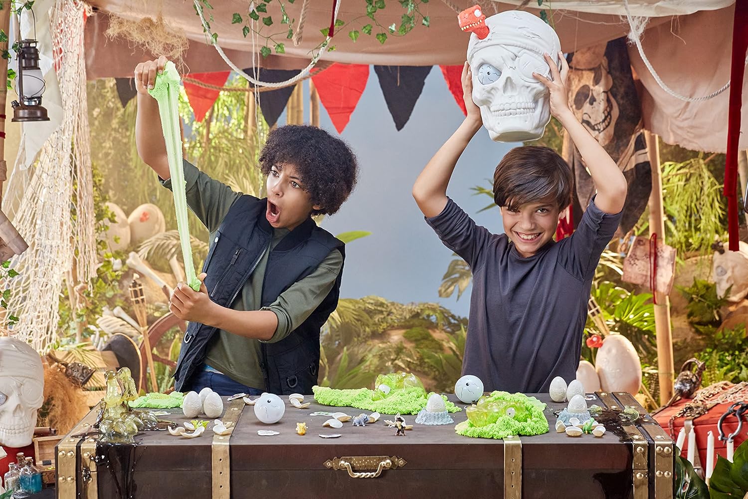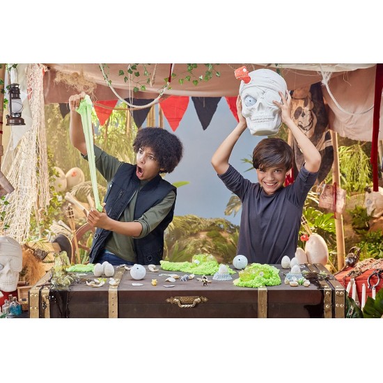 Cautati prin slime-ul elastic si spuma de vata de zahar pentru a gasi piesele de dinosaur.
