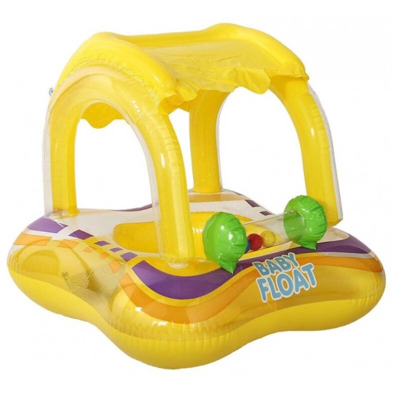 Cercul gonflabil, este foarte convenabil si interesant pentru bebelusi. Veti invata copilul cu apa. Palarioara ce acopera cercul, va proteja copilul de lumina directa a soarelui, protejind astfel pielea delicata a bebelusului de arsura. Zornaietoarea cu bile, situat in fata copilului, va face procesul de scaldat mai distractiv si mai interesant.
