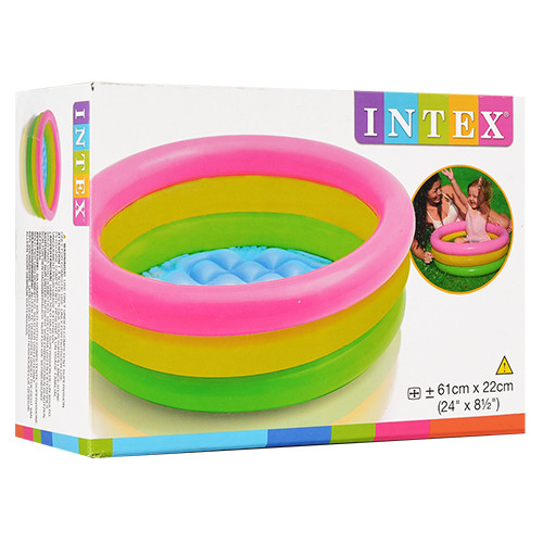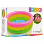 Piscina gonflabila pentru copii, va fi un cadou excelent pentru copiii care iubesc sa se scalde. Piscina este realizata din PVC de inalta calitate. Piscina este facuta sub forma unui cerc, in forma umflata seamana cu un curcubeu, peretii sai sunt vopsiti in culori diferite. Partea de jos a bazinului este, de asemenea, umflat sub forma de numeroase bile, astfel incit acesta poate fi plasat pe o suprafata tare. Piscina va fi o distractie excelenta pentru copii in zilele fierbinti de vara.