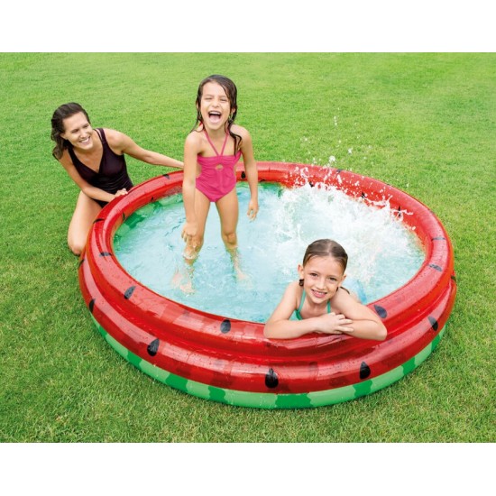 Un bazin original de la compania Intex. In bazinul colorat in pepene verde pot incape pina la 3 oameni.