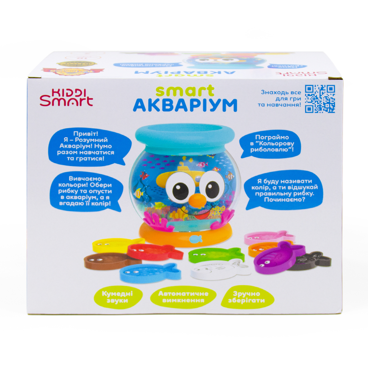 SMART-AQUARIUM este o jucarie interactiva bilingva, datorita careia copilul va invata culorile in ucraineana si engleza. Iar pestii stralucitori colorati vor face jocul si mai interesant si distractiv! Sa invatam si sa ne jucam impreuna!