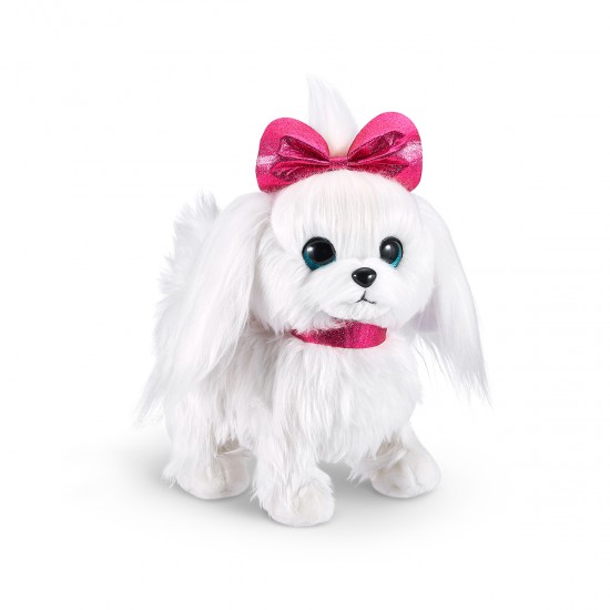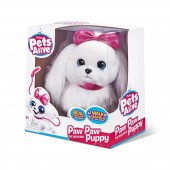 Jucarie interactiva Catelusa alba cu fundita roz, Paw Paw Puppy Pets Alive