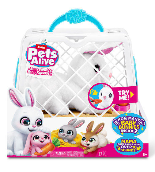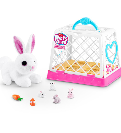 Jucarie interactiva Iepuras Mama Bunny Baby Surprise, peste 10 sunete si reactii, Pets Alive, Zuru