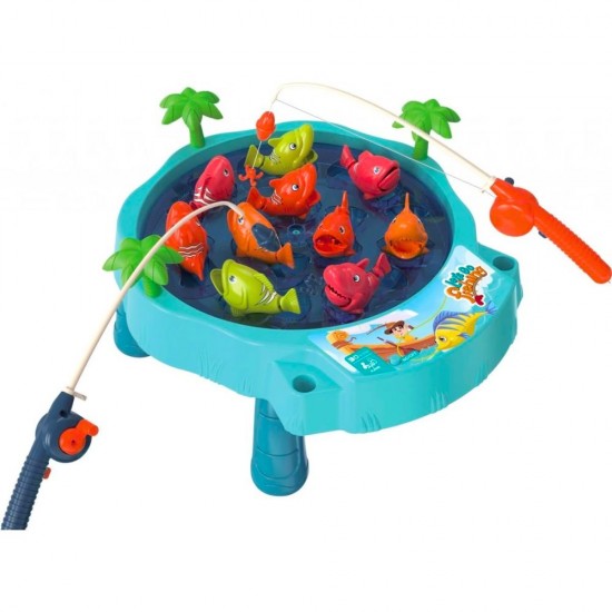 Pregateste-te pentru o partida de pescuit plina de ritm si voie buna! Acest joc interactiv clasic revine intr-o varianta moderna, dotata cu o platforma rotativa si functii muzicale antrenante. Scopul jocului este captivant: micii pescari trebuie sa isi demonstreze indemanarea folosind unditele pentru a prinde pestisorii colorati in timp ce acestia isi deschid gura pe masura ce baza se invarte.
