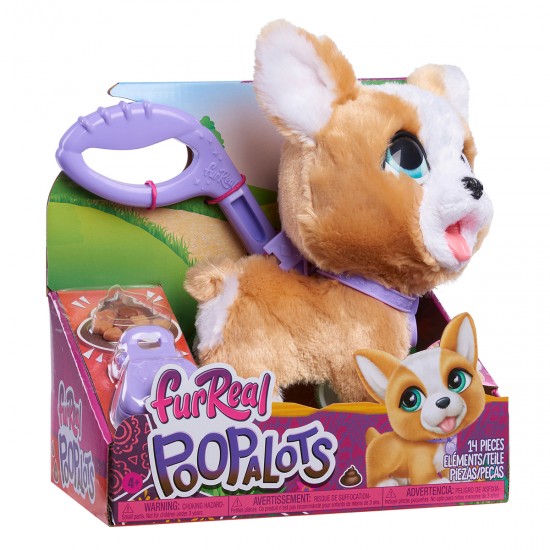 Jucarie interactiva de plus Catelus Corgi cu lesa, 23 cm, Furreal seria Poop-A-Lots