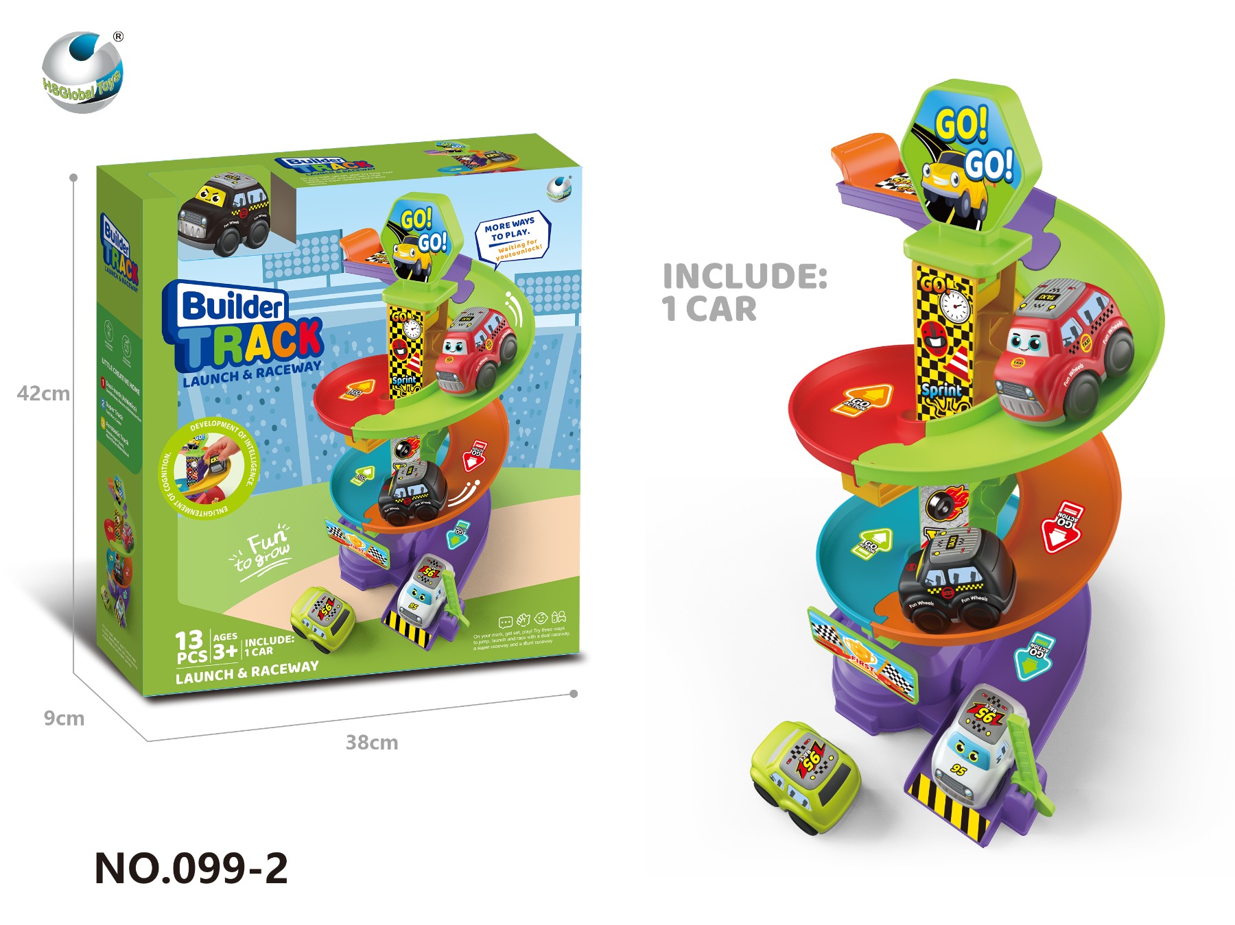 Designul multicolor si elementele grafice vesele capteaza atentia copiilor, in timp ce manevrarea masinutei pe pista ajuta la dezvoltarea coordonarii ochi-mana si a intelegerii conceptelor de baza precum gravitatia si viteza. Este jucaria ideala pentru ore intregi de distractie interactiva!